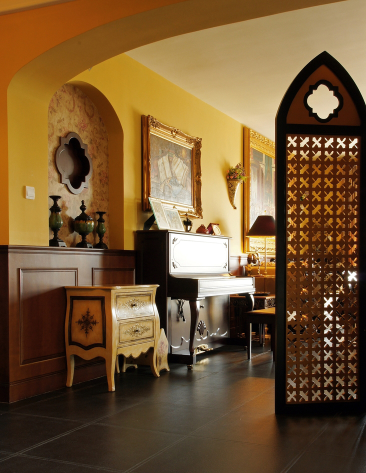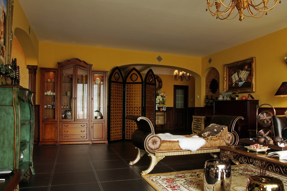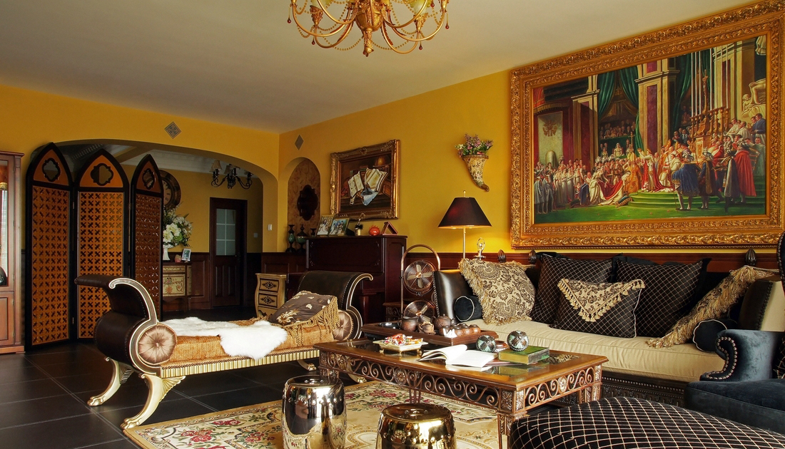 *皇家貴族* 語出業主Angel:“御金香,這個好,有氣派,有皇家貴族的味道...” 篩選作品名字時,我拿出幾個備選名,與Angel逐個淘汰后,鎖定《御金香》。 *風格大跳躍* 與之前的作品《珊瑚島奇遇記》不同,這次的設計風格跳躍很大。Angel家適合美式風格,可能跟Angel之前長期生活在美國有關系。設計過程中我還在想,可否“植入”中式古典元素,做成“形散神不散”的后現代混搭風格。自從在“加洲地帶”選定床和衣柜款式后,我立馬打消了這個念頭。最后只是象征性地在茶幾旁邊植入兩張中西合壁的陶瓷凳。 *暴發戶* 語出Angel的先生:“導火牛。不會是那個顏色吧?太暴發戶了,我不要暴發戶的感覺,很土。” 當客廳墻裙還是半成品時,Angel的先生以為是成品油漆的顏色,指著墻裙納悶地說道。 我馬上重復在工地經常說的一句口頭禪:“是半成品。還沒上好顏色。”整個設計完成后會凸顯歐洲貴族氣。 *拿破侖他老媽呢?* 沙發背后的巨幅掛畫,由于畫師的“偷工減料”,拿破侖加冕圖上的另一關鍵人物--拿破侖的老媽不在畫中。 我們又跑回油畫村,重新換了一幅人物更飽滿的拿破侖加冕油畫,同時將18厘米的畫框加大成22厘米。氣勢立竿見影。 *波斯王子* 波斯王子、異域風情、蝴蝶夫人、神秘尼羅河... 無論以怎樣的角度審視,客廳沙發傳達出每個細節的氣質都耐人尋味。 在不少家具賣場看過一些山寨版。都沒有這樣的神韻。 *夏威夷瀑布* 客房的藍色條紋布、青果色墻漆、米白吊扇..... 太陽照在“鋪滿鮮花”的床單上,夏威夷的夢停靠在傾瀉的窗紗上... *韓版青春美少女* 語出Angel的QQ簽名款,這是她給女兒房的定義。女孩房的風格定位與客廳、書房的絕然不同。 根據年齡的劃分,每個家庭成員都可以匹配屬于自己的個性空間。仍是“以人為本”的設計核心理念。